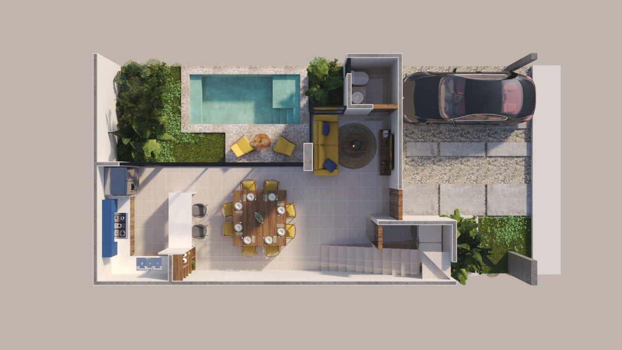 Desarrollo ubicado en Cholul, al Norte de Mérida, conformado por 20 townhouses con caseta de vigilancia, cada uno con Rooftop y alberca incluidos.